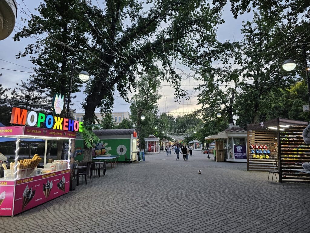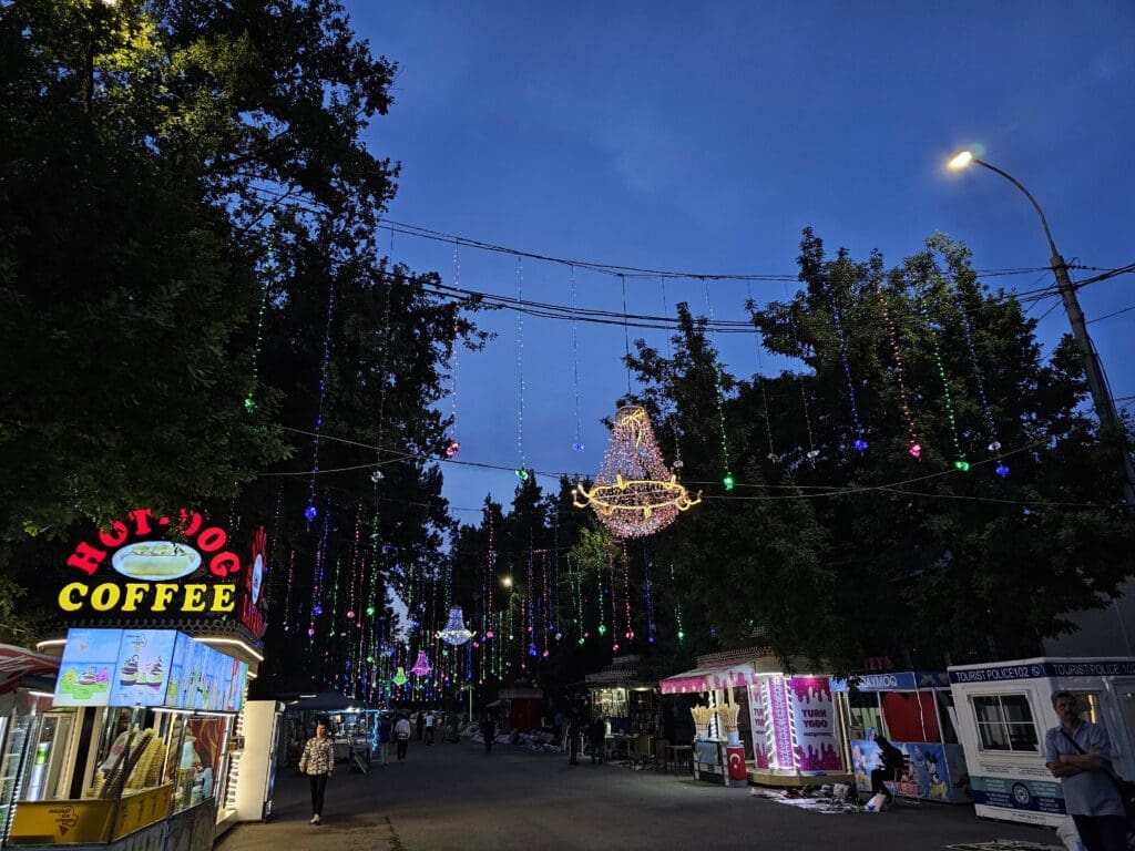 Framing the square are some of Tashkent’s most important institutions and landmarks, including the imposing Uzbekistan Hotel, the Palace of International Forums, the State Museum of the Temurids and the graceful clock tower, the Tashkent chimes. The architectural blend of Uzbek traditional styles, Soviet-era grandeur and more modern developments tell the story of a city that has evolved through many layers of history.