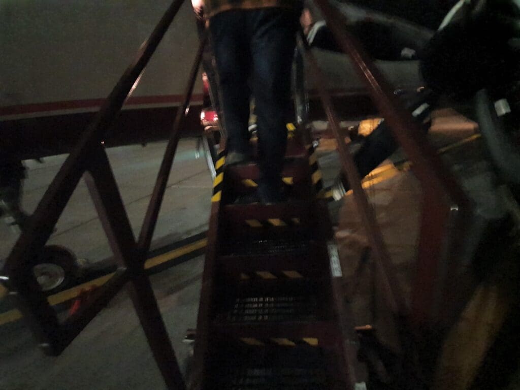 Upon approaching the aircraft, the Captain could be seen selecting passengers’ hand luggage deemed too large to fit under the aircraft’s seats and placing this in the small cargo hold in the Metroliner’s nose. Meanwhile, the First Officer stood outside at the foot of the aircraft’s stairs welcoming passengers. Both pilots that morning appeared to be fairly young, which was not a great surprise given the fact that many newly qualified pilots start their flying careers at small regional airlines such as Bearskin Airlines. Whilst the Metroliner does have steps built into the inside of the main cabin door, being rather steep, a set of shallower steps had been positioned up to the cabin entrance. Making my way up these, I quickly admired the impressive five-blade propeller before diving into the Metroliner’s small cabin.