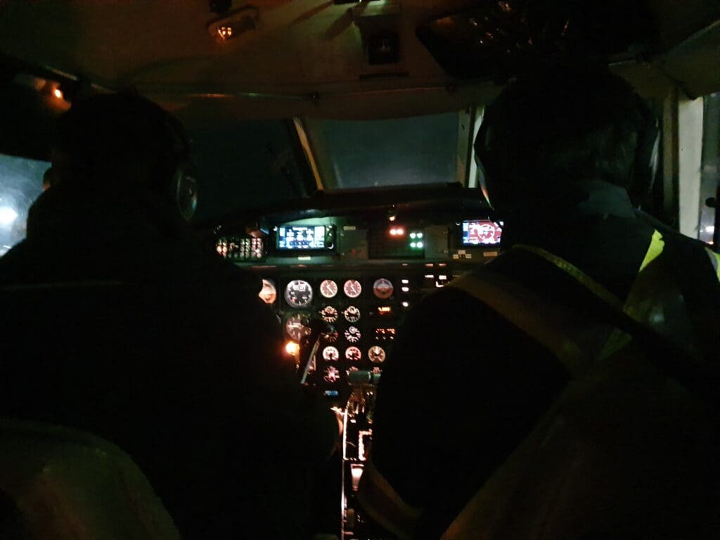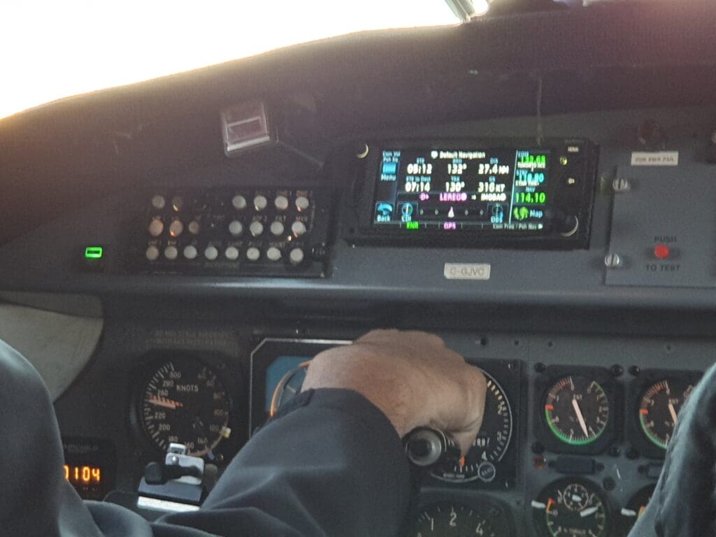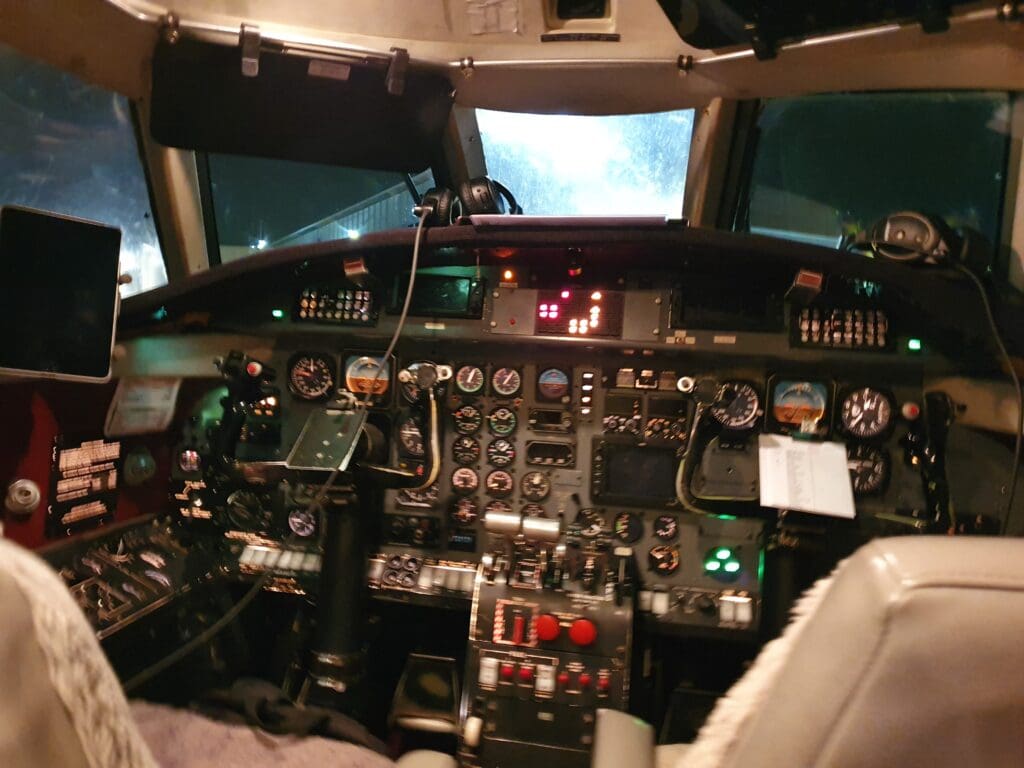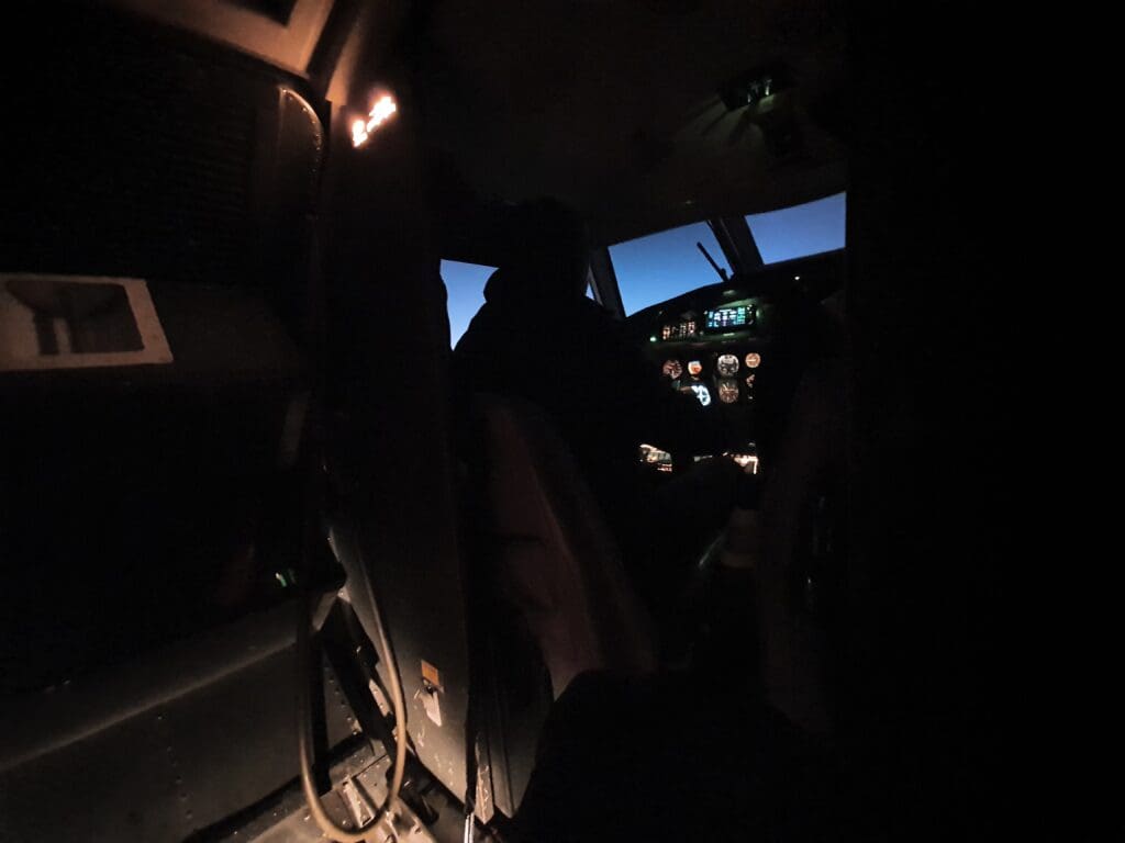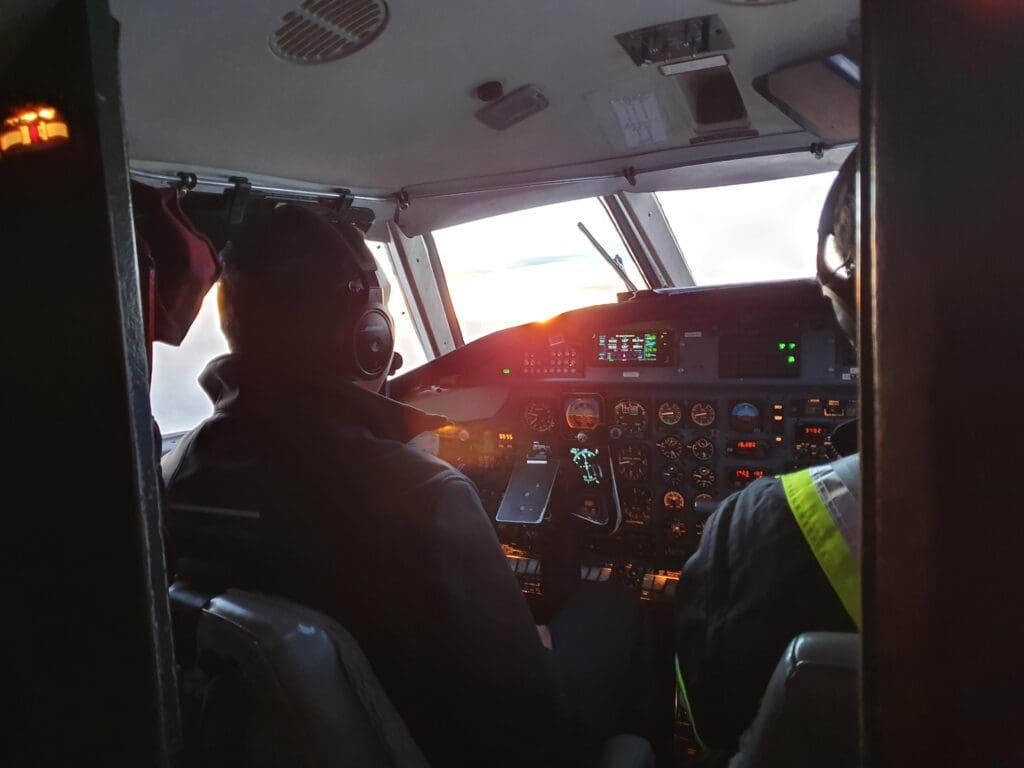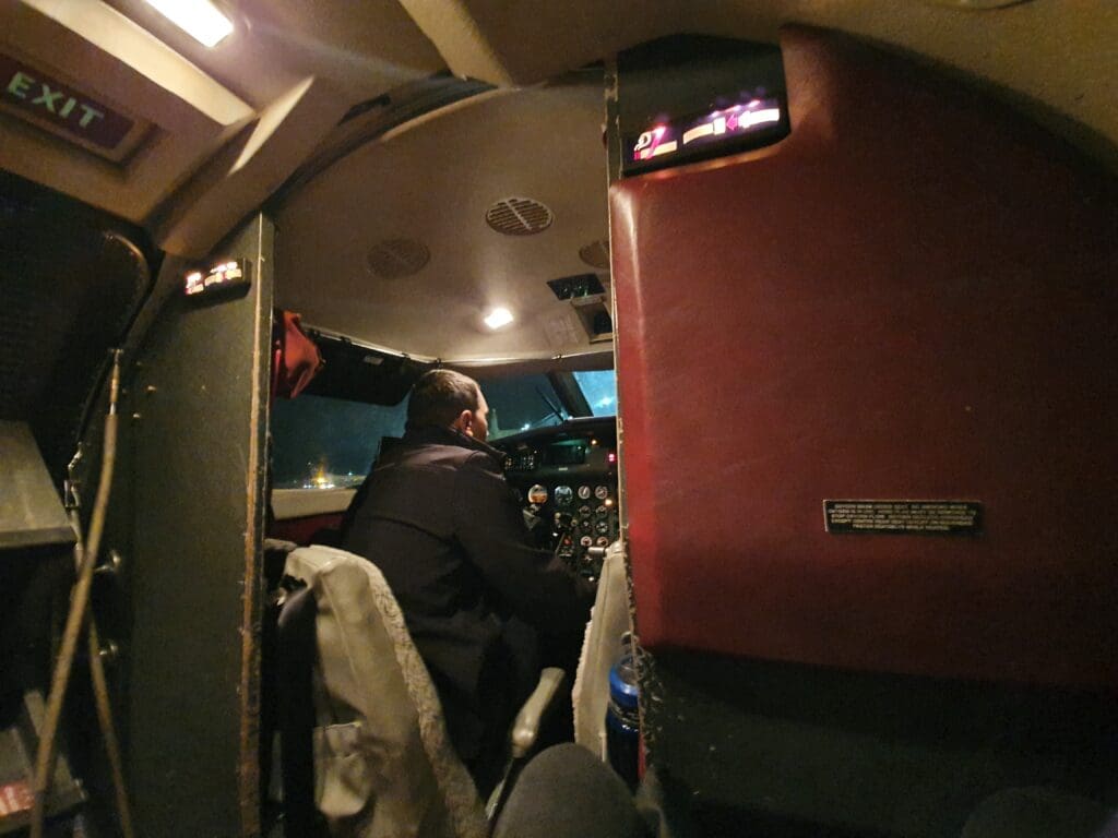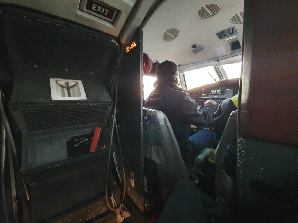 Almost as soon as I had taken my seat and strapped myself in, the captain entered the cabin and slid into the cockpit before the first officer entered and closed the cabin door. After doing this, they then turned to face the passengers and commenced a short welcome and safety announcement. During this, the First Officer informed passengers that the flight time to Sault Ste Marie would be one hour and advised all to wear their face masks during the flight before moving onto the safety demonstration. As the first officer performed this speech, the captain flicked a few switches up ahead in the cockpit and the Metroliner’s two Garrett TPE331-21 engines began to start up ready for the journey ahead. Whilst this was accompanied by the usual whining, whirring and vibrating as these fired up into life, this was slightly quieter than I had expected given the Metroliner’s small size. Once the first officer retreated into the cockpit, the two pilots could be seen running through a checklist before the aircraft lurched forward out of its stand and commenced its taxi over to the end of Runway 07. As the aircraft made its way to the runway, the captain stretched his arm out of the cockpit and flicked the switch for the cabin lights, located near the door, plunging the cabin into darkness and allowing for a good view of the lit-up cockpit.