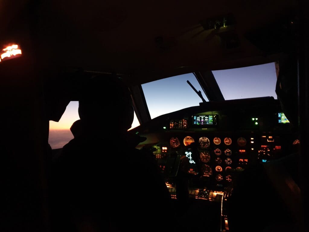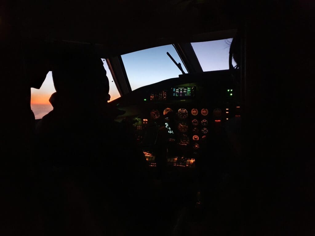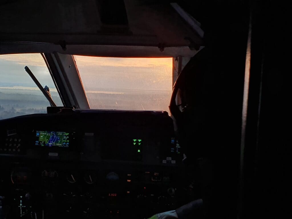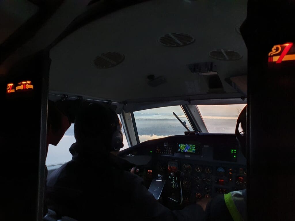 As the aircraft climbed through the thick layer of clouds, we were shaken about quite a bit although as soon as we emerged from these things calmed down with the entire first leg proving to be nice and smooth. Upon emerging from the clouds, the light of dawn appeared through the cockpit windows and the aircraft eventually levelled off at its cruising altitude of 19,000 feet around twenty minutes after departure, travelling eastwards at a ground speed of between 295 and 305 knots. From Thunder Bay, the aircraft made its way out across the largest of North America’s Great Lakes, Lake Superior, trundling across this from its northern to eastern shores. However, thanks to the thick clouds below nothing of this could be seen as the aircraft made its way towards Sault Ste. Marie