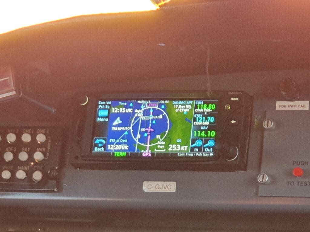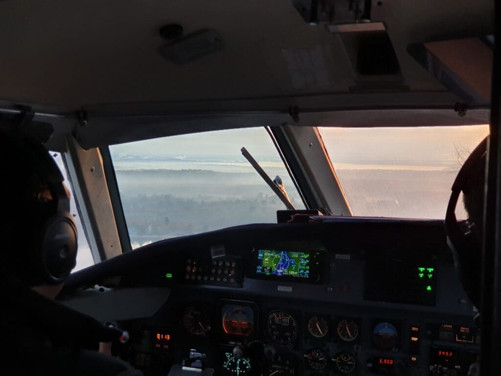 Before I knew it, with 47 nautical miles left to run until Sault Ste. Marie the Metroliner commenced its descent, with the captain entering an altitude of 3,900 feet into the autopilot after which the aircraft descended at a quick pace of 2100 feet per minute. As the Metroliner descended back towards the ground, the clouds temporarily parted revealing the waters of Lake Superior however this glimpse lasted no more than a minute with low-lying clouds lingering around Sault Ste. Marie that morning.
